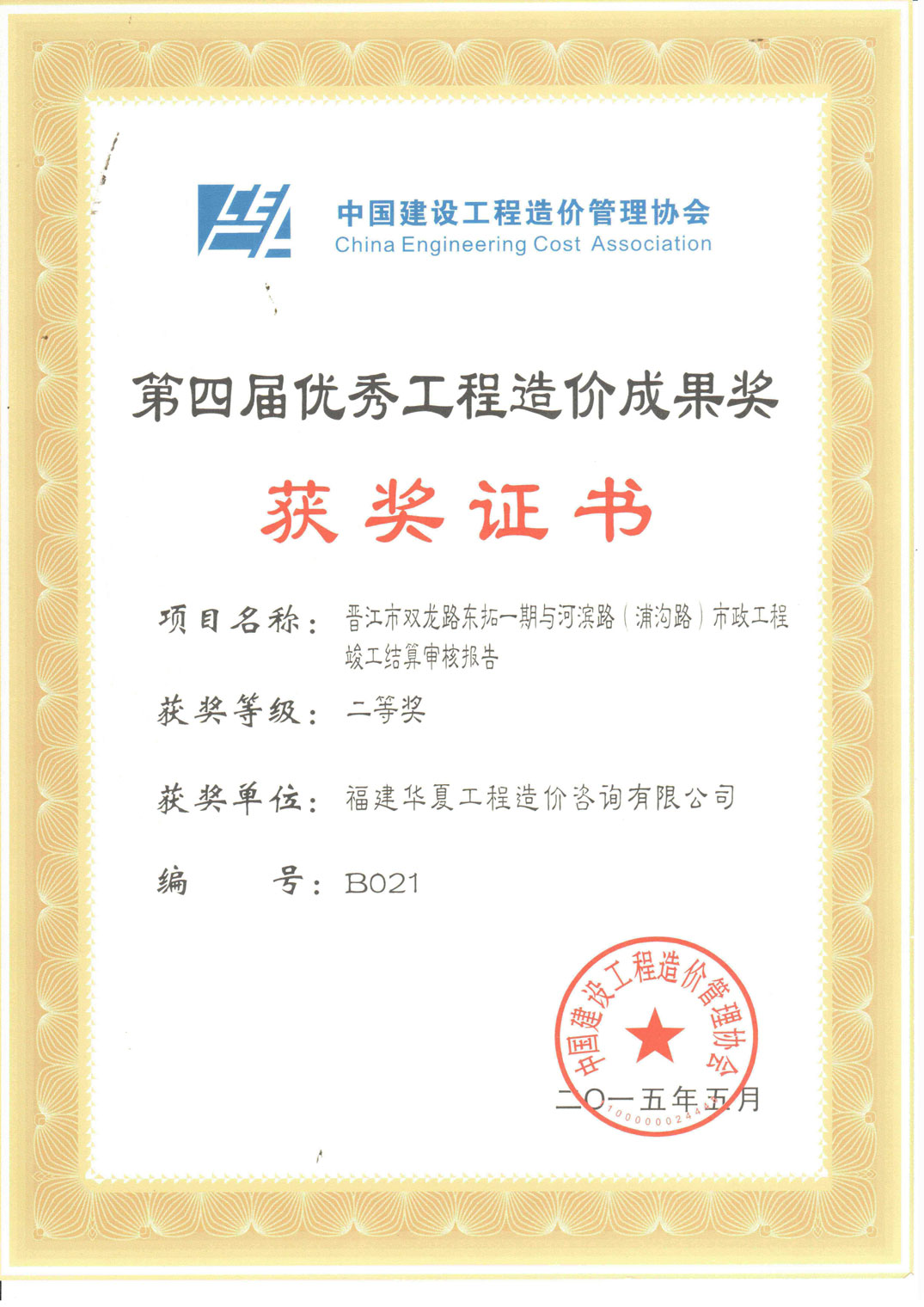 2014年度公司获中价协颁发的工程造价优秀成果奖二等奖