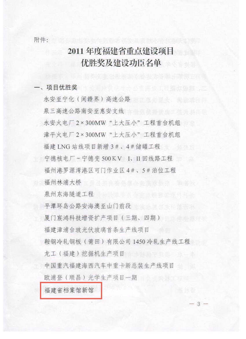 公司代建项目“福建省档案馆新馆”获得“国家优质工程奖”,