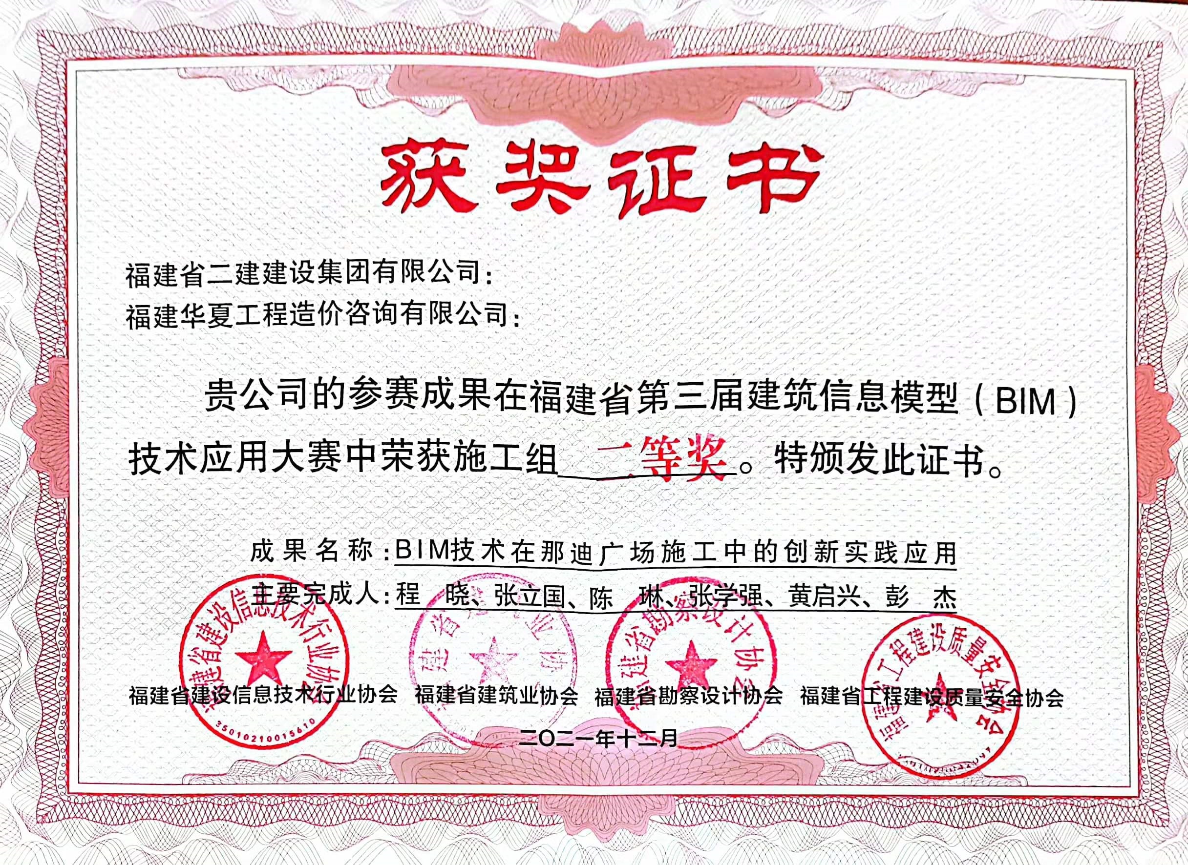 福建省第三届建筑信息模型(BIM)技术应用大赛中施工组二等奖