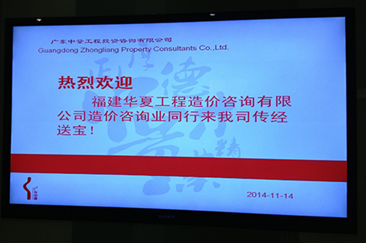2014年11月14日,公司  董事长:黄启兴,副总经理:方金辉、陈林梅,赴广州市与广东中量工程投资咨询有限公司、广州市宏正工程造价咨询有限公司交流学习。