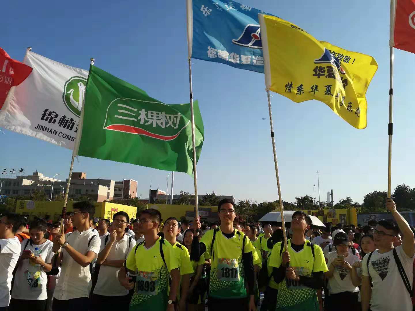 下午14:30,华夏乐跑团正式入场。秋高气爽,每个人的脸上都洋溢着灿烂与期待的笑容。奥体中心人山人海,远远的就能看见华夏造价那随风招展的旗帜。